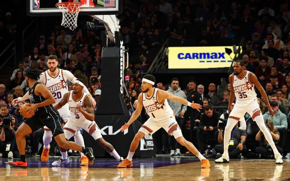 太陽隊(duì)首發(fā):德文-布克、凱文-杜蘭特、尤素福-努爾基奇、布拉德利-比爾、奇梅齊耶-梅圖