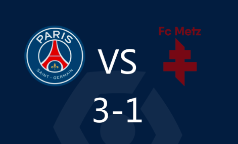 法甲第17輪,巴黎迎戰(zhàn)梅斯。上半場佩雷拉解圍失誤險些自擺烏龍。易邊再戰(zhàn),李剛?cè)手ゾS蒂尼亞先拔頭籌,姆巴佩轟出世界波再下一城,烏多爾扳回一球,姆巴佩抓住對方回傳失誤輕松推射空門本場雙響。最終巴黎3-1梅斯。積分榜方面,巴黎40分暫8分領(lǐng)跑,梅斯16分第14。
